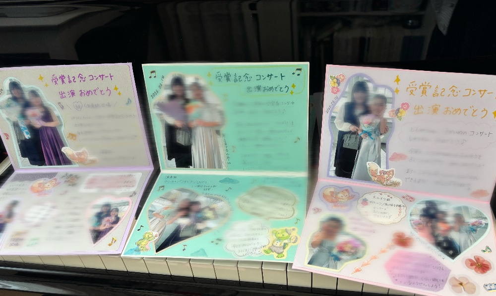受賞記念コンサートが終わってから、すぐにプログをアップしたかったのですが、お手紙を書いてくれた生徒さんたちへのお返事を書いたり、レッスン室の掲示板に写真やメッセージを貼ったりしていたら、3日も過ぎてしまいました💦